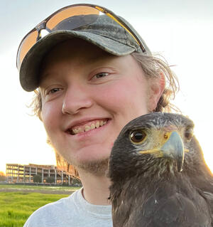 Nerd of a Feather was founded by Morgan Beliz, and his husband, Hélder, joins him in running operations. The cast is comprised of Kulshedra (hatched 2019), a captive-bred Harris' hawk that's been with Morgan since she was only 21 weeks old.Morgan was born in love with raptors, and he knows that the same compassion for the natural world lives in everyone. His journey began when he was eight years old and an educator let him hold one of their red-tails. Four years later, he was taking ornithology at the College of Marin, and by fifteen he was training his own red-tails for falconry. Since then, he's been involved in numerous pursuits, including participating in published American goshawk research, interning in condor propagation at The Peregrine Fund, and assistant managing a raptor rehabilitation program. Today, he holds his own master falconry permit, and looks forward to spending more time focusing on his own outreach endeavors.